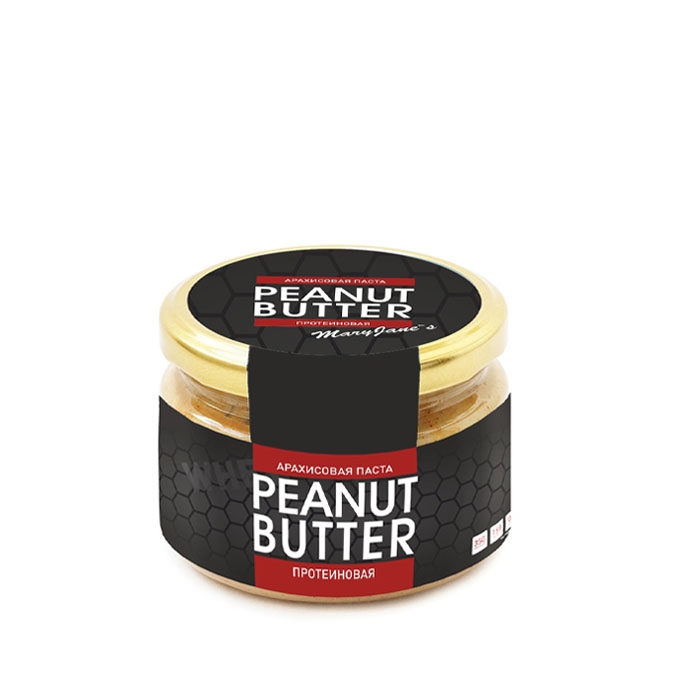 стеклянная банкаАрахисовая паста «Протеиновая» – новинка высокобелковой арахисовой пасты от отечественной красноярской компании "MaryJane's Kitchen". Арахисовая паста «Протеиновая» готовится без добавления сахара, соли и масла – она идеально подойдет диабетикам и людям, ведущим здоровый и спортивный образ жизни (данная паста делается с добавлением протеина).